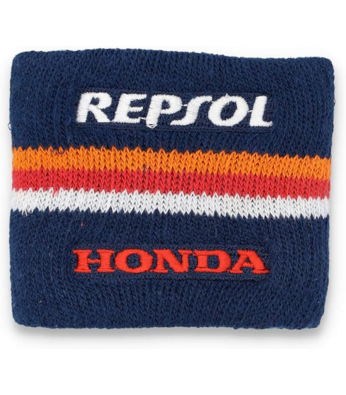 Bracelet de la collection officielle Repsol Racing. Base bleue avec rayures orange, rouges et blanches emblématiques. Repsol and Honda Flat embroidery. Composition : 95 % polyester, 5 % élasthanne, Dimensions de l’article 10 x 10 x 60 centimètres