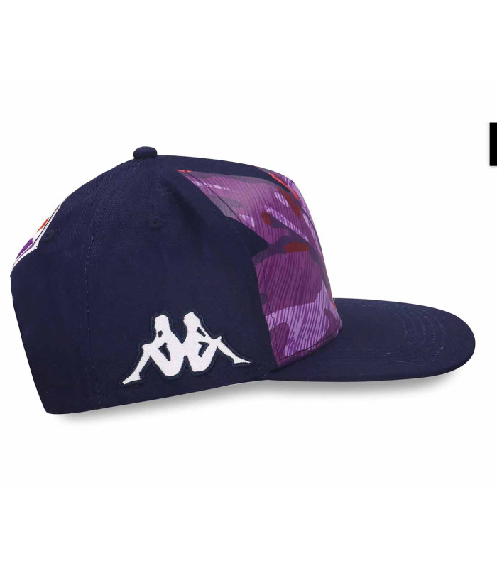 Casquette visière plate en tissu sergé. Fermeture arrière en plastique et panneau avant avec impression. Omini brodé et logo Team FIORENTINE en gabardine. ACF FIORENTINE