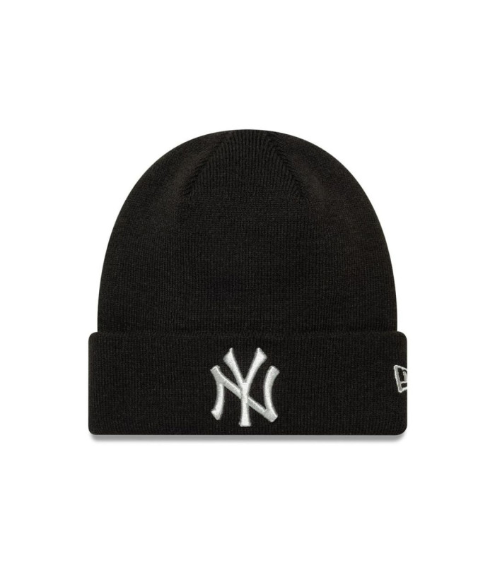 Bonnet Noir à revers tricoté métallisé MLB New York Yankees, Logo des New York Yankees sur le devant, Drapeau New Era brodé sur la gauche, Couronne en maille, Revers plié, 100% ACRYLIQUE