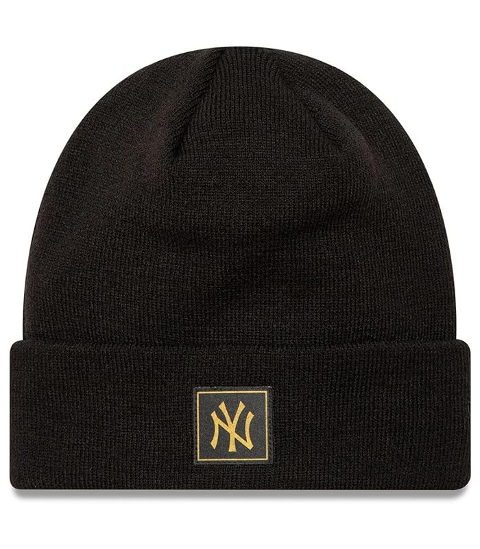 'Nouveau bonnet noir New era Bonnet avec un revers tout noir élastique Patch new york yankee noir et or Matière très élastique pour le mettre à la bonne taille et pour un maximum de confort 100% acrylique