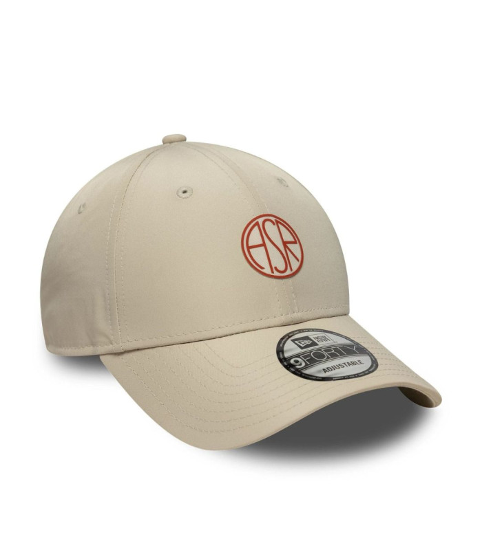 Casquette 9FORTY Adjustable AS Roma Streetwear Beige Clair, logo AS Roma rond sur le devant, New Era Flag brodé à gauche, Couronne structurée, Sangle réglable, Visière courbée, 100 % POLYESTER