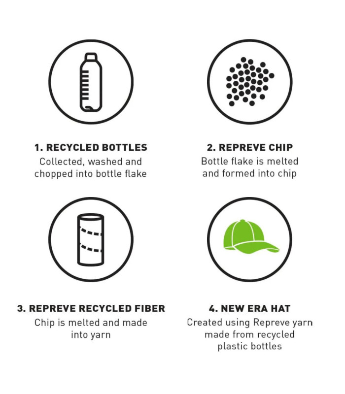 Cette collaboration est la plus respectueuse de l'environnement que nous ayons jamais réalisée, en collaboration avec les spécialistes des tissus Repreve®. Utilisant des matériaux recyclés, cette casquette est fabriquée à partir de cinq bouteilles en plastique, offrant durabilité et finition de haute qualité tout en conservant une faible empreinte carbone.