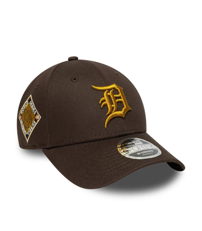 Casquette 9FORTY M-Crown Detroit Tigers MLB World Series Patch Marron Foncé, logo Detroit Tigers sur le devant, Patch Detroit Tigers World Series à droite, Logo de la NBA à l’arrière, New Era Flag brodé à gauche, Couronne moderne structurée, Snapback, Visière courbée, 100 % COTON
