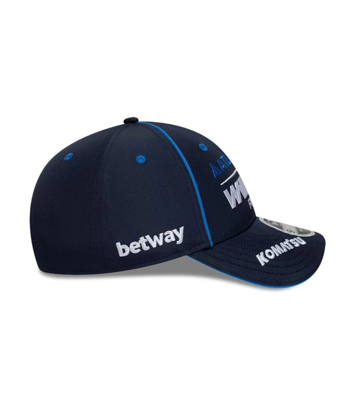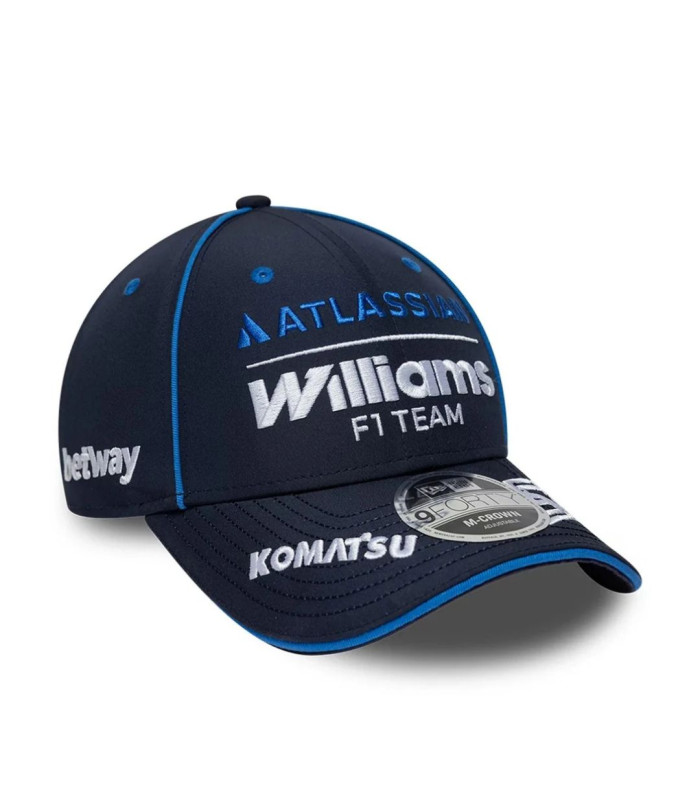 Casquette 9FORTY M-Crown Atlassian Williams F1 Team Carlos Sainz Jr. Bleu marine, Logo Atlassian Williams F1 Team sur le devant, logo Betway à droite, Numéro du pilote Carlos Sainz Jr. à gauche de la visière, logo KOMAT'SU à droite de la visière, Piment à gauche du sous-viseur, New Era Flag brodé à gauche, Couronne moderne structurée avec passepoil bleu sur le devant, Snapback, Visière sandwich courbée avec intérieur blanc, Sous-visière bleu marine, 100 % POLYESTER