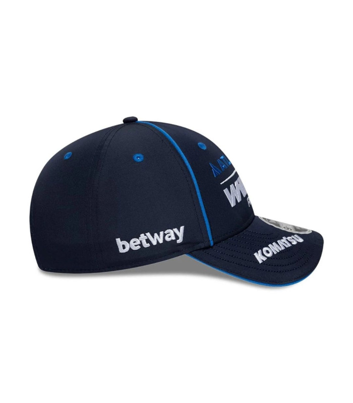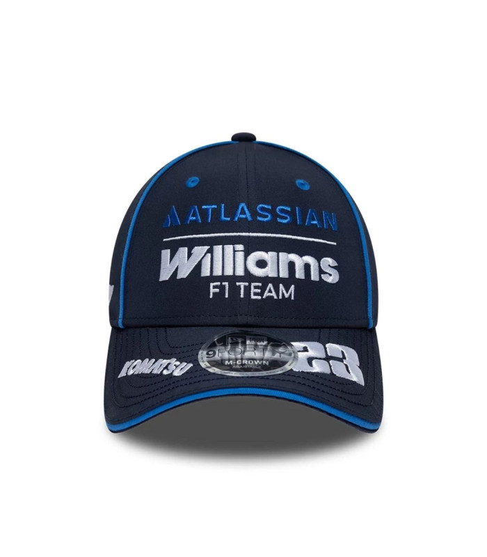 Casquette 9FORTY M-Crown Atlassian Williams F1 Team Alex Albon Bleu marine, Logo Atlassian Williams F1 Team sur le devant, Logo Betway à droite, Numéro du pilote Alex Albon à gauche sur la visière, logo KOMAT'SU à droite de la visière, logo Alex Albon à gauche de la sous-visière, New Era Flag brodé à gauche, Couronne moderne structurée avec passepoil bleu sur le devant, Snapback, Visière sandwich courbée avec intérieur blanc, Sous-visière bleu marine, 100 % POLYESTER