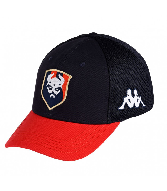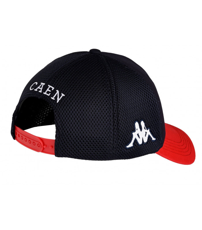 Casquette Kappa Asety SM Caen Officiel Football La casquette ASETY est la casquette officielle pour supporter l'équipe de Caen. Rouge et bleu, elle reprend les couleurs du club et permettra aux fans de compléter leurs tenues pour assister aux matchs. Casquette homme en tissu sergé et maille. Visière baseball, fermeture arrière réglable en plastique. Logo Omini brodé sur les côtés, logo de l'équipe en gabardine brodé sur le devant.