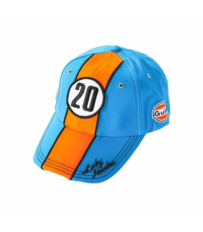 La casquette « Lucky Number 20 » (numéro porte-bonheur 20) en coton reprend fièrement les couleurs Gulf.
