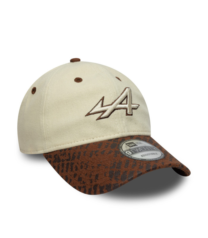 Casquette 9TWENTY Adjustable Alpine Racing Heritage Marron Foncé, logo Alpine Racing sur le devant, New Era Flag brodé à gauche, Couronne non-structurée, Sangle réglable à motif marron foncé, Visière courbée à motif marron foncé, Sous-visière à motif marron foncé, 49,6 % RAYONNE, 37,6 % POLYESTER, 12,8 % LIN