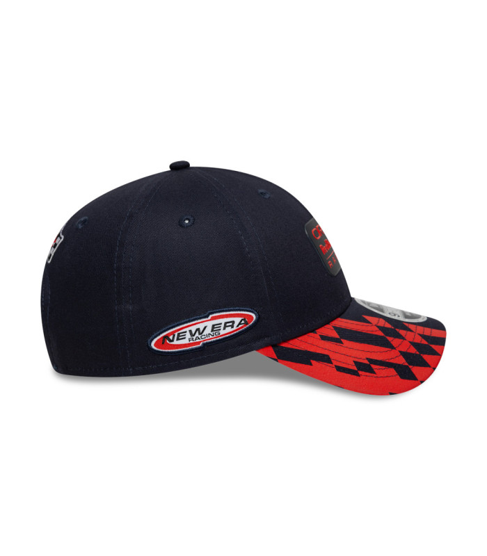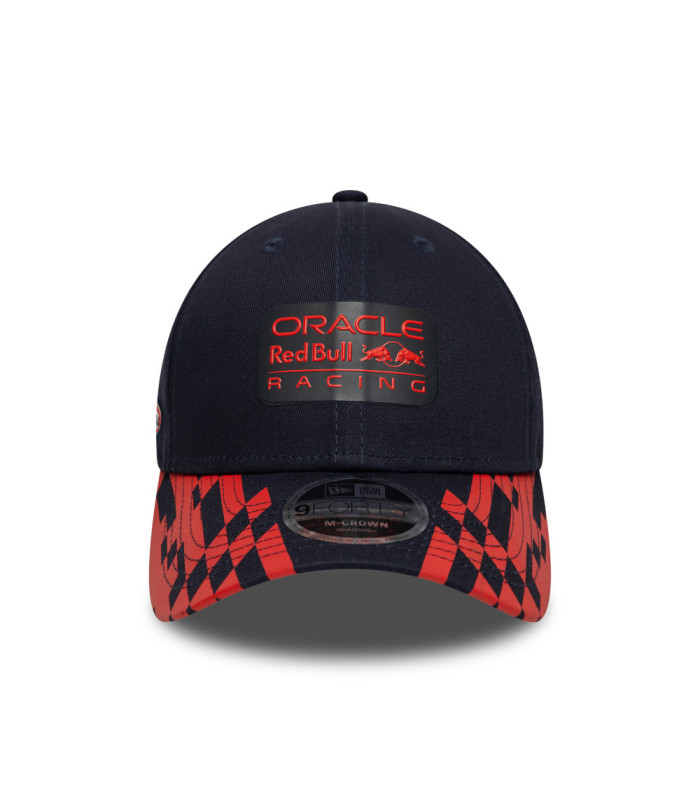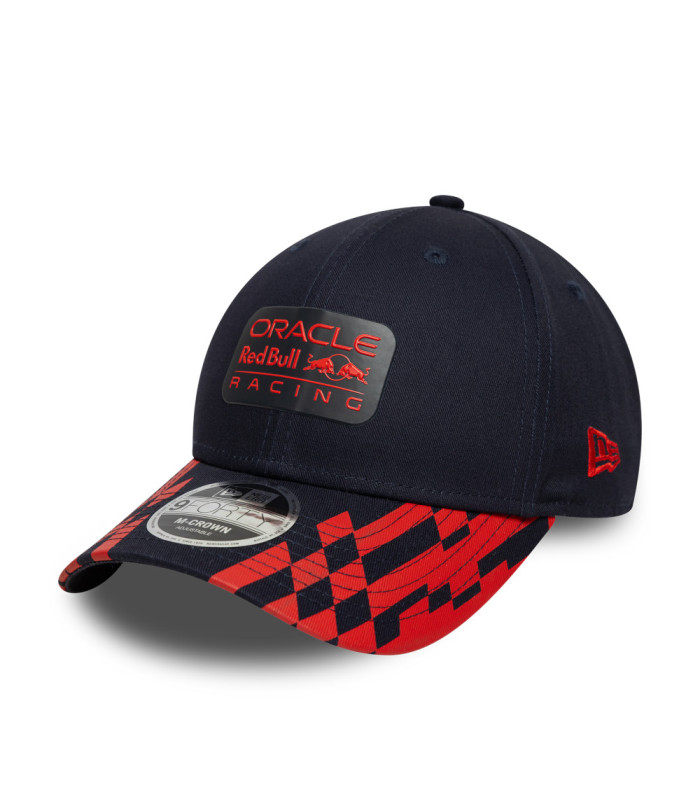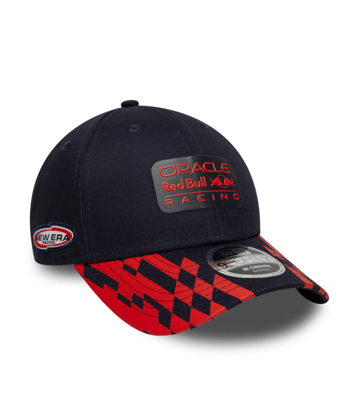 Casquette 9FORTY M-Crown Adjustable Red Bull Racing Visor Print Bleu foncé, Logo Oracle Red Bull Racing à droite sur la poitrine, Patch New Era à droite, logo ORBR graphique sur la voûte arrière, New Era Flag brodé à gauche, Graphisme drapeau Racing sur le côté gauche et droit de la visière supérieure, Couronne moderne structurée, Snapback, Visière courbée, Sous-visière bleu marine, 100 % COTON