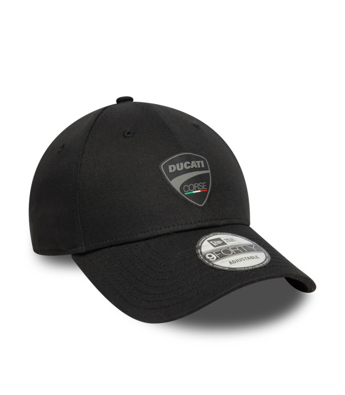 Casquette 9FORTY Adjustable Ducati Corse Logo Noir, logo Ducati Corse sur le devant, New Era Flag brodé à gauche, Couronne structurée, Sangle réglable, Visière courbée, 100 % COTON