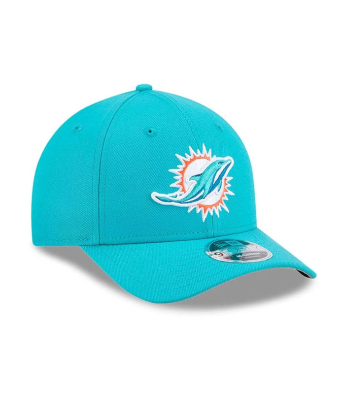Casquette 9FORTY M-Crown Miami Dolphins NFL Team Turquoise, logo Miami Dolphins sur le devant, Logo de la NFL à l’arrière, New Era Flag brodé à gauche, Couronne moderne structurée, Snapback, Visière courbée, Sous-visière grise, 100 % POLYESTER