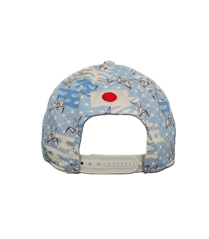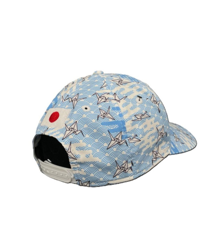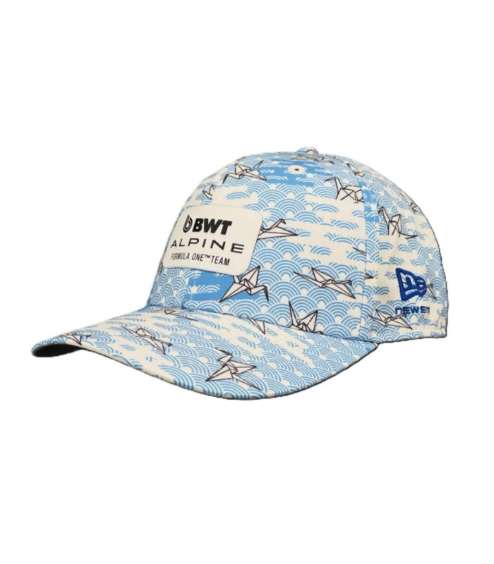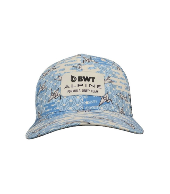 Casquette Alpine, Tissu imprimé reprenant les origamis japonaises, Patch Alpine Formula 1 Team en caoutchouc sur l'avant , Drapeau du Japon brodé à l'arrière, ,Taille unique réglable , De couleur Bleu / Blanc, 100% Coton