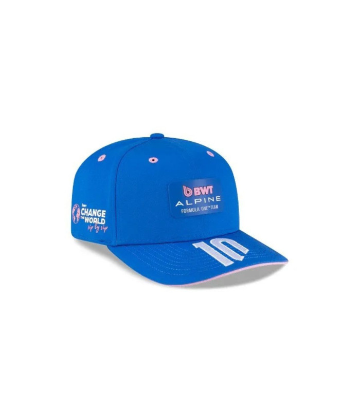 Casquette incurvée New Era 9SEVENTY de l'écurie BWT Alpine F1 , design Pierre Gasly dotée d'un design exclusif comprenant le logo Alpine sur les panneaux avant, le numéro 10 de Pierre Gasly sur la visière et le drapeau New Era brodé sur le côté gauche. 97% Coton 3% Elasthane