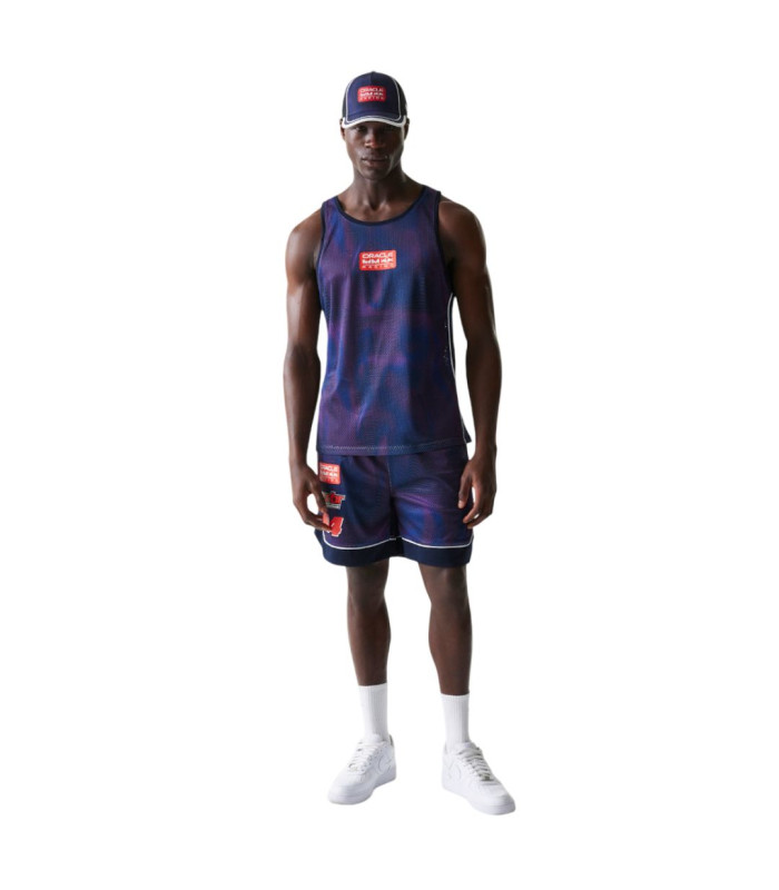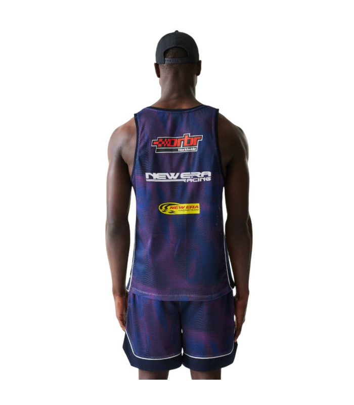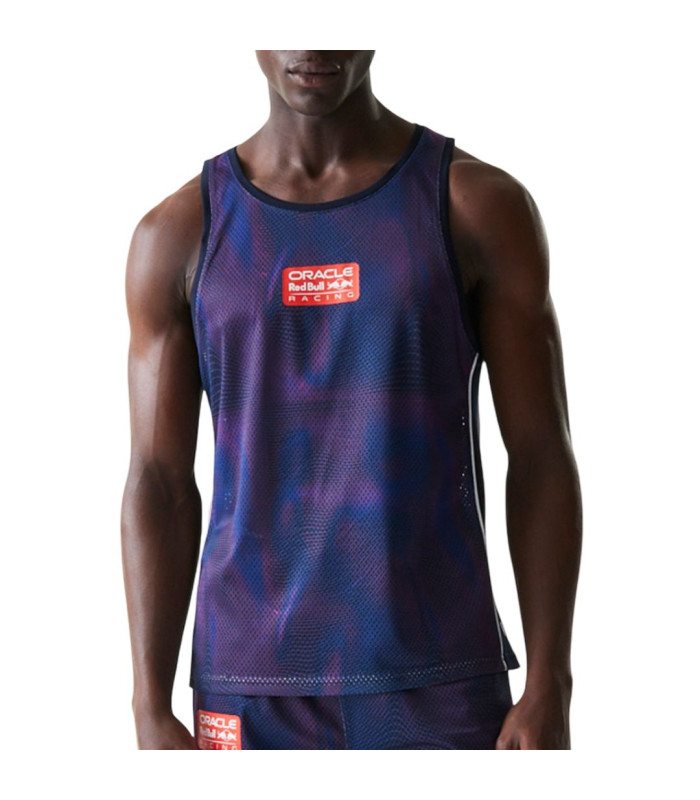 Débardeur RB Racing en maille bleu foncé. Logo Oracle RB Racing sur le devant. Logo Orbr Worldwide au dos. Logo New Era Racing au dos. Logo de l'équipe New Era Racing au dos. Drapeau New Era brodé en bas à gauche sur le devant. Sans manches. Le mannequin mesure 1,88 m et porte une taille M.. Fabriqué en tissu mesh. 100 % POLYESTER