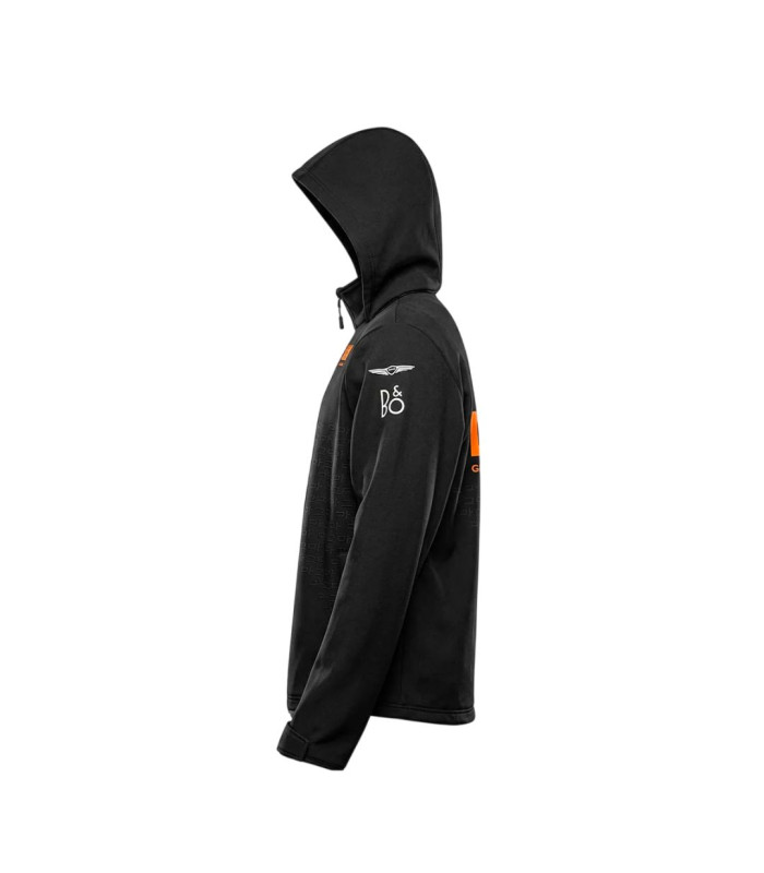 Veste à capuche noire inspirée de l’univers GMR Motorsport. Design racing avec logos orange contrastants sur la poitrine et graphisme ton sur ton sur le côté. Fermeture zippée, coupe confortable et style sportif pour un look dynamique. Veste de pluie unisexe en tissu tissé texturé et avec la technologie WATER PROTECTION. Doublure intérieure en aiguille goutte, capuche intérieure du col, ouverture zippée complète à l’avant, poches avec fermeture éclair, poignets élastiques, cordon de serrage élastique au bas. Logo Omini, logo d’équipe et personnalisations imprimés à l’avant et à l’arrière.