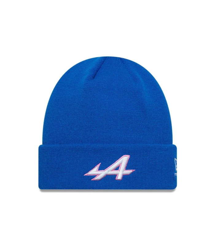 Bonnet Alpine Racing Essential Bleu, Logo Alpine Racing sur le devant, New Era Flag brodé à gauche, Couronne tricotée, Revers, 100 % ACRYLIQUE
