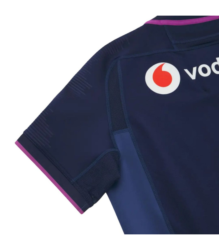 Le Maillot Domicile Écosse de la marque Macron est un vêtement emblématique, conçu pour tous les passionnés de rugby et supporters de l’équipe nationale d'Écosse. Ce maillot incarne l'esprit et la fierté d'une équipe qui se bat sur le terrain avec détermination et courage. Fabriqué avec un tissu de haute qualité, ce maillot offre une excellente respirabilité et un confort optimal lors des matchs ou des entraînements. Sa conception ergonomique permet une grande liberté de mouvement, essentielle pour les joueurs sur le terrain. Que vous soyez en train de jouer ou d’encourager votre équipe depuis les gradins, vous apprécierez la sensation agréable de ce maillot sur votre peau. Le design du Maillot Domicile Écosse reflète l'identité dynamique de l’équipe. Chaque détail du maillot a été soigneusement pensé pour représenter les couleurs et les motifs qui symbolisent la tradition rugbystique écossaise. Porter ce maillot, c'est faire partie d'une communauté passionnée qui se regroupe autour de valeurs telles que la solidarité, l'engagement et le respect.