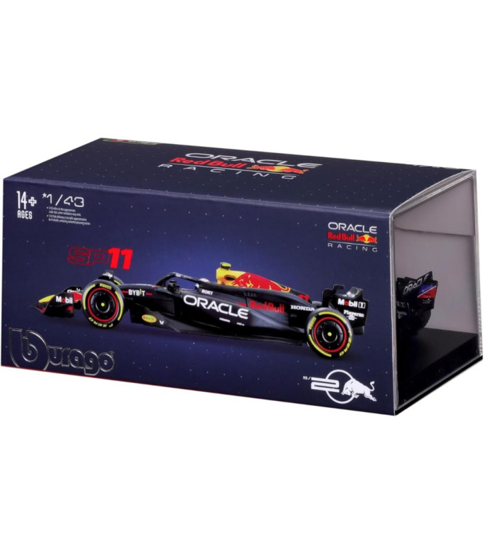Voiture Miniature F1 1/24 de la Red Bull RB19 avec pilote et vitrine n 11 RedBull pilotée par Sergio Perez au Grand Prix de Austin de Formule 1. Modèle réduit de voiture Bburago. Catalogue Miniatures automobile Bburago 2024. Maquette auto de collection.