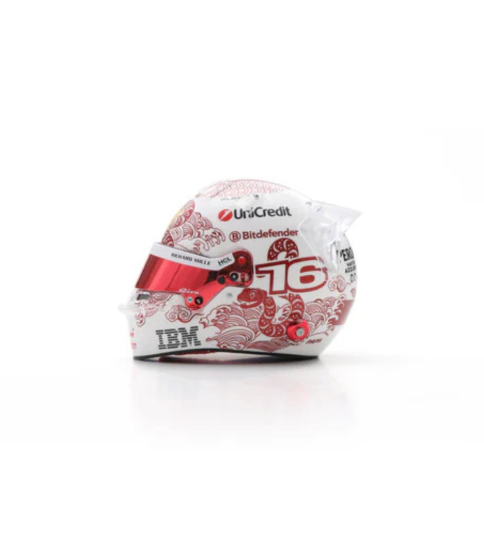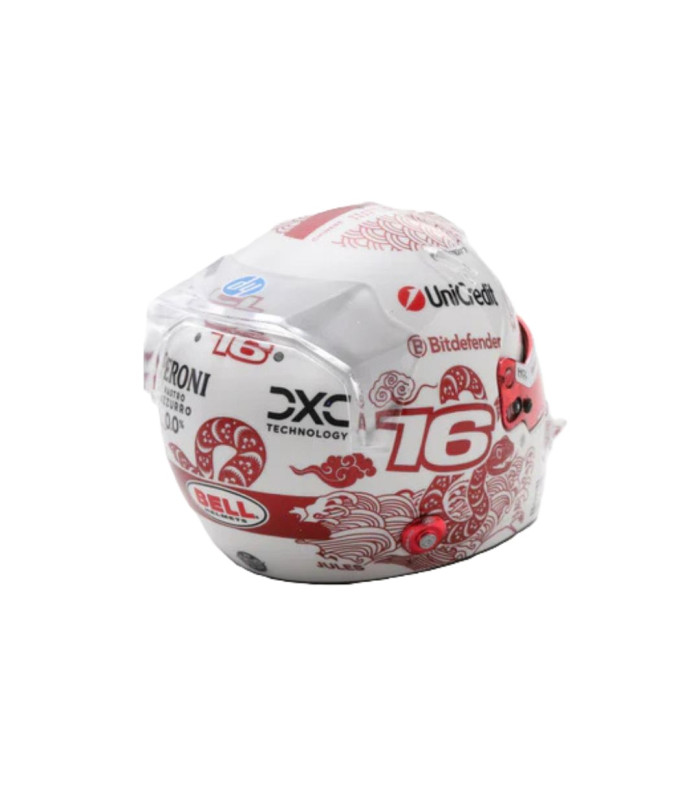 Réplique à l'échelle 1/5 du casque porté par le pilote Charles Leclerc de la Scuderia Ferrari HP durant le GP de Chine 2025.