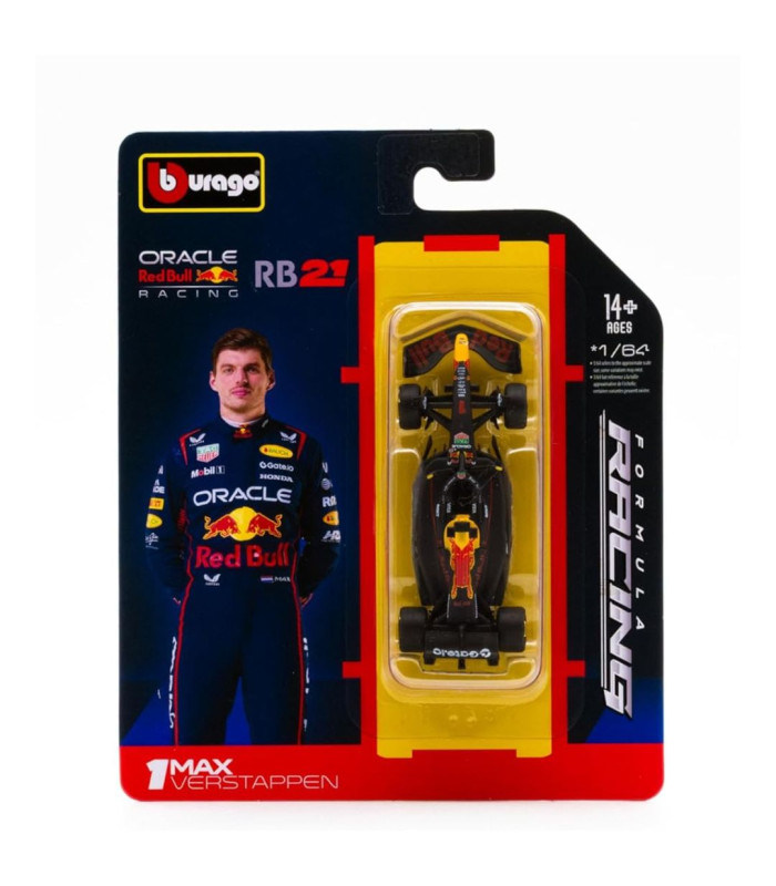Bburago - F1 Red Bull Racing RB21 n°1 Max Verstappen, Voiture diecast à l'échelle 1:64, réplique détaillée de monoplace de Formule 1, Couleurs Officielles, Blister de Collection, 14+