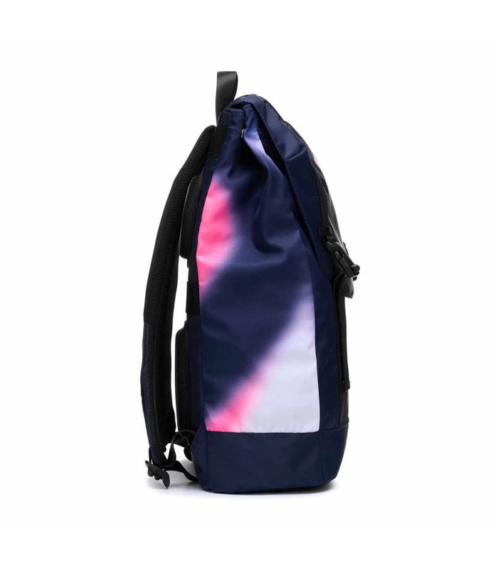 Sac à dos officiel. Espace principal avec boucles magnétiques à l'avant, poche interne pour ordinateur, poignée supérieure, bretelles et panneau arrière rembourrés et fond renforcé, graphique imprimé sur les côtés.