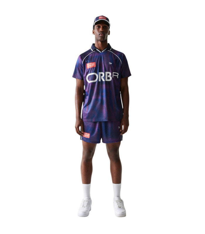 Short de Football RB Racing All Over Print Bleu foncé. Logo Oracle RB Racing à droite sur la poitrine. New Era Flag brodé sur la poche gauche. Détails passepoilés sur le côté des jambes gauche et droite. Poches avant gauche et droite. Taille réglable avec cordon. Le mannequin mesure 1,83 m et porte une taille Medium. 100 % POLYESTER