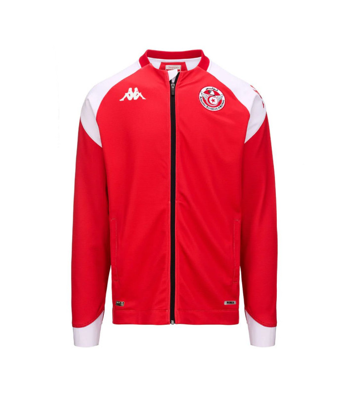 Pour cette édition de la CAN, Kappa et la FTF s'associent une nouvelle fois et offrent une nouvelle gamme professionnelle de qualité pour tous les fans de la sélection tunisienne. Le ARUN est la nouvelle veste de la collection de Tunisie pour la CAN. 95% polyester, 5%Elasthanne. Lavage en machine à 30°. Rouge, blanc. Coupe droite.