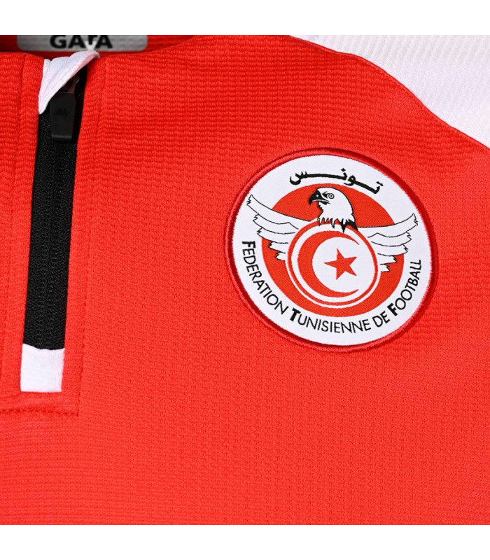 Pour cette édition de la CAN, Kappa et la FTF s'associent une nouvelle fois et offrent une nouvelle gamme professionnelle de qualité pour tous les fans de la sélection tunisienne. Le ABLAS est le nouveau 1/4 Zip de la gamme Tunisie pour la CAN. 95% polyester, 5% élasthanne. Lavage en machine à 30°. Rouge, blanc. Coupe droite.