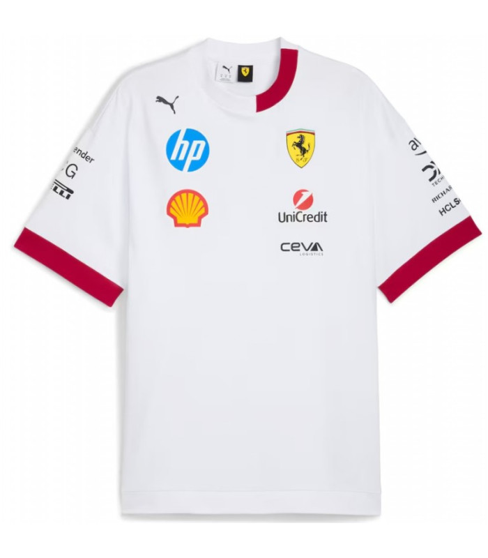 Préparez-vous à vivre une saison de Formule 1 palpitante et soutenez la Scuderia Ferrari à chaque virage avec ce t-shirt oversize. Les logos Ferrari et des sponsors sur la poitrine, le dos et les manches lui confèrent le style incontournable des circuits, tandis que le rouge emblématique de l'écurie orne les poignets et le col de façon asymétrique. Sa coupe oversize en fait le vêtement idéal pour un look décontracté et confortable, avec une touche Ferrari.