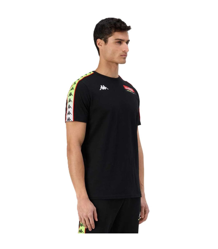 Kappa et VR46 unissent leur savoir-faire afin de créer une collection alliant performance et raffinement. Admirez l’élégance à l’Italienne qui incarne l’esprit de la compétition avec style. Ce t-shirt offre confort et dynamisme aux passionnés de sport automobile. T-shirt homme col rond en jersey de coton. Col côtelé. Logos de transfert. Bande banda marquée sur les manches.100% coton. Lavage en machine à 30°, Noir, Coupe droite.