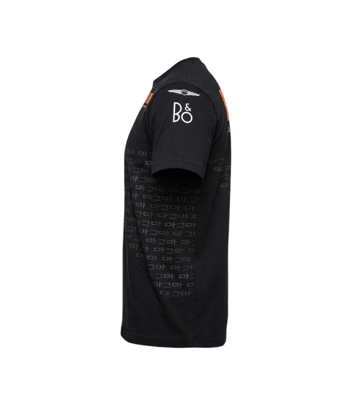 T-shirt noir inspiré de l’univers GMR Motorsport. Design racing avec logos orange contrastants sur la poitrine et graphisme ton sur ton sur le côté. Coupe confortable et tissu léger, idéal pour un look sport et dynamique au quotidien. T-shirt manches courtes pour homme. Manches à emmanchure et col rond. Omini logo, patch d’équipe et personnalisation imprimée GMR.