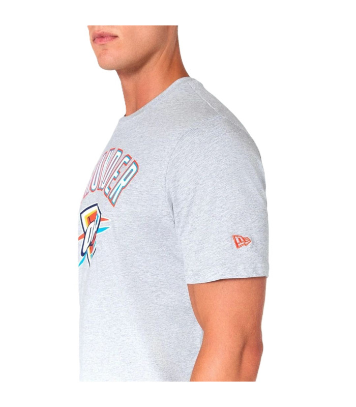 T-shirt Oklahoma City Thunder NBA Gris, Logo d'équipe à l'avant, New Era Flag brodé sur la manche gauche, 100% Coton