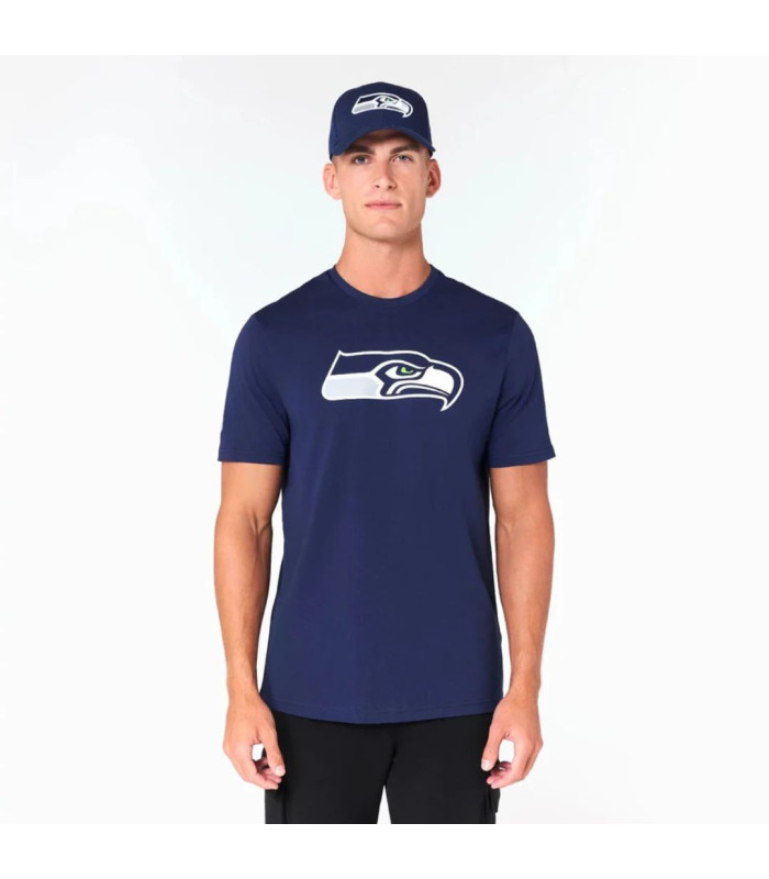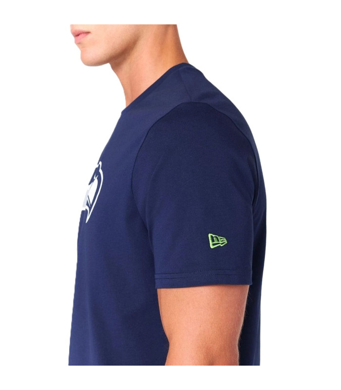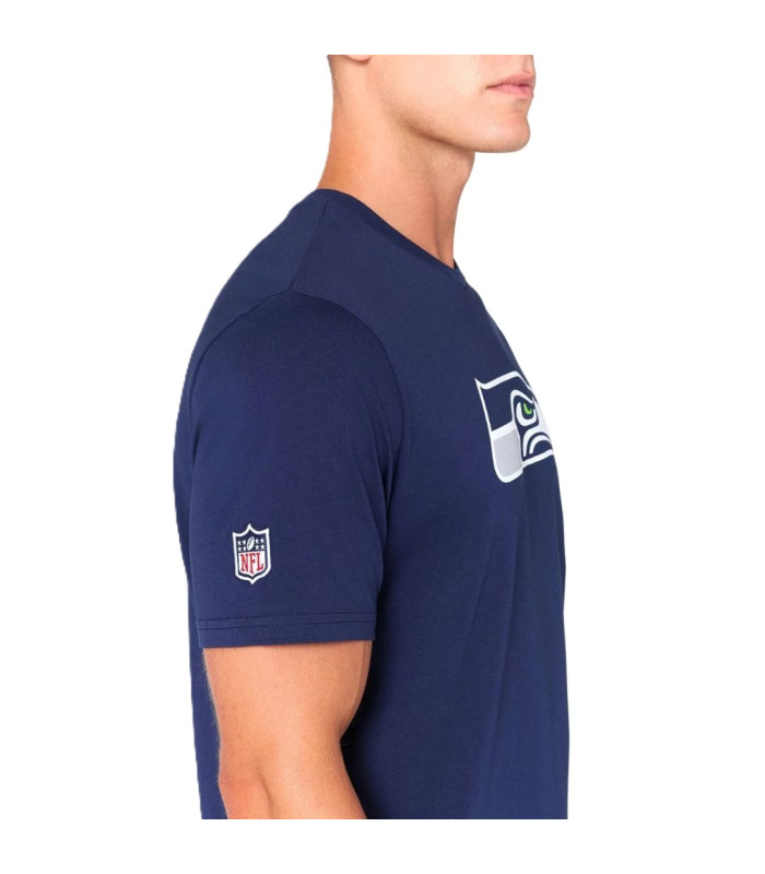 T-shirt Seattle Seahawks NFL Bleu marine, Logo d'équipe à l'avant, Logo de la NFL sur la manche droiten, New Era Flag brodé sur la manche gauche, 100% COTON