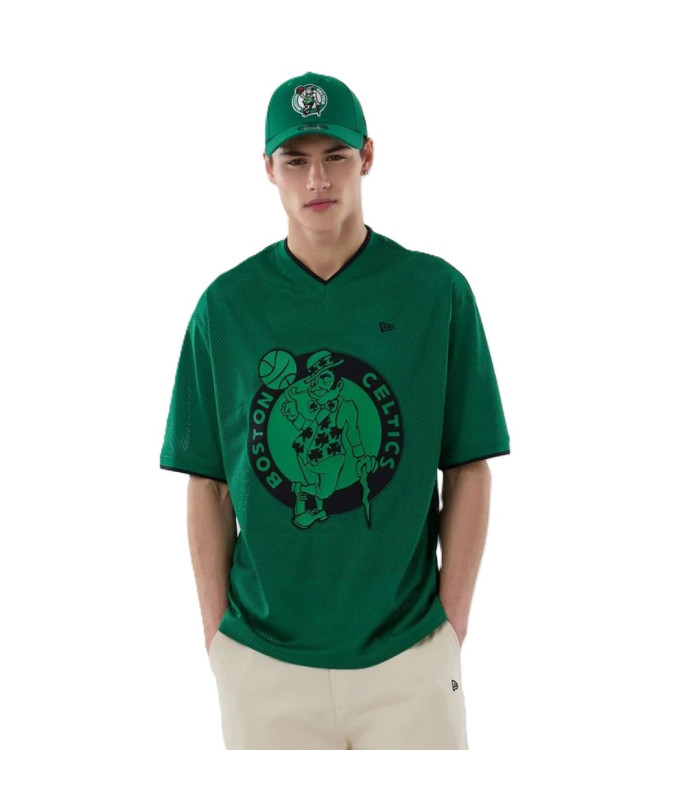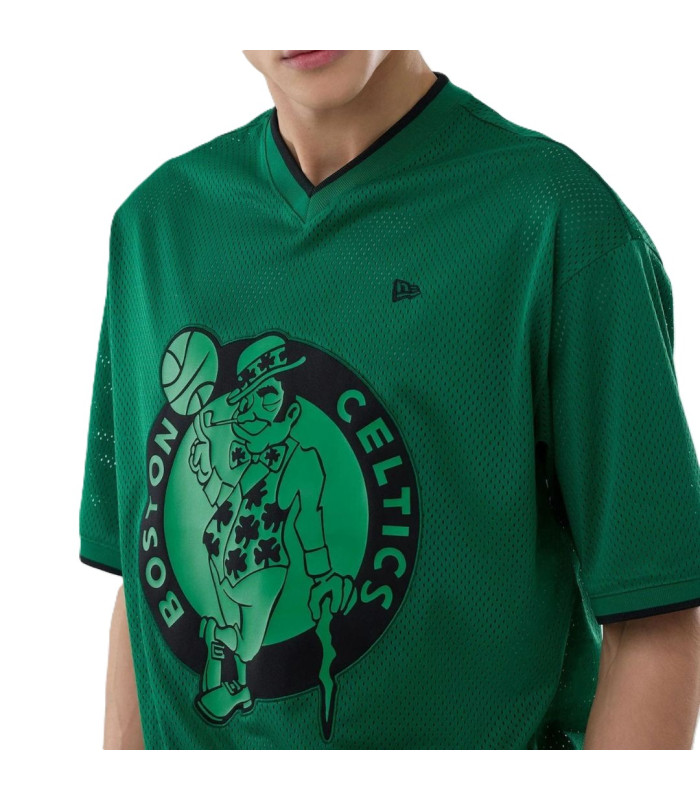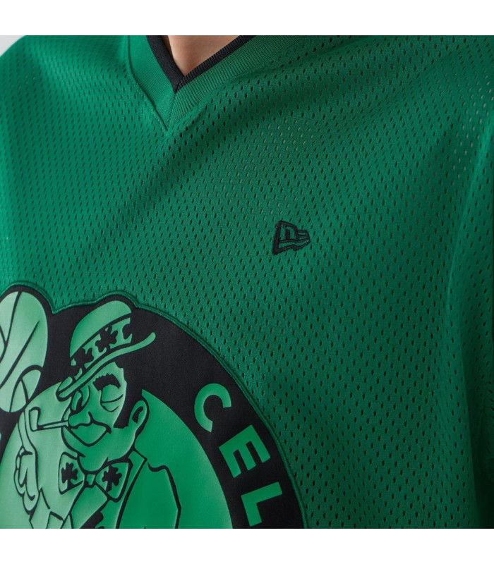 T-shirt Oversize en Mesh Boston Celtics NBA Vert, Logo Boston Celtics sur le devant, New Era Flag brodé à gauche sur la poitrine, Coupe oversize, Col en V, Fabriqué en matière mesh, 100 % POLYESTER