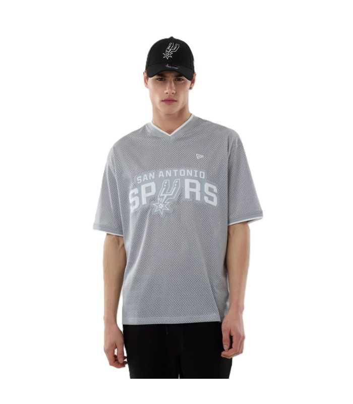 T-shirt Oversize en Mesh San Antonio Spurs NBA Gris, Logo San Antonio Spurs sur le devant, New Era Flag brodé à gauche sur la poitrine, Coupe oversize, Col en V, Fabriqué en matière mesh, 100 % POLYESTER