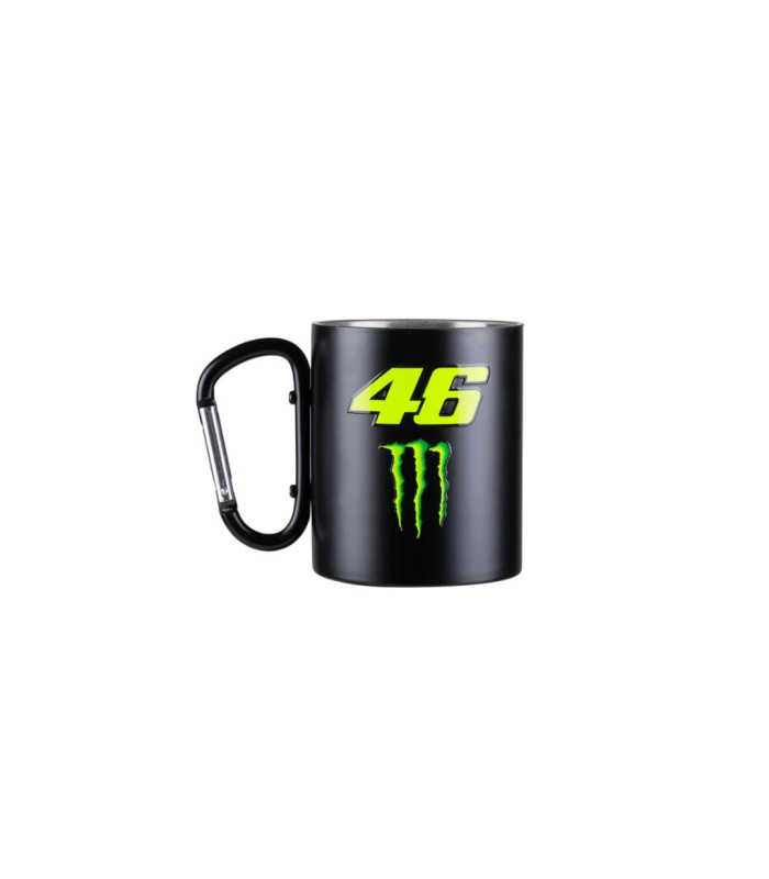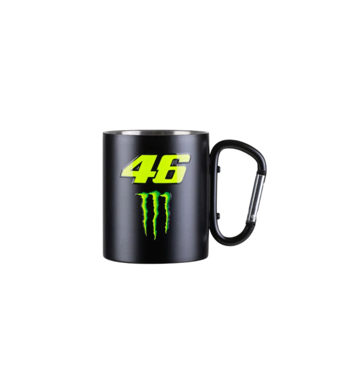 Tasse en métal appartenant à la collection Monster VR46. Elle est dotée d'une anse mousqueton et arbore le numéro 46 et la griffe Monster imprimés.