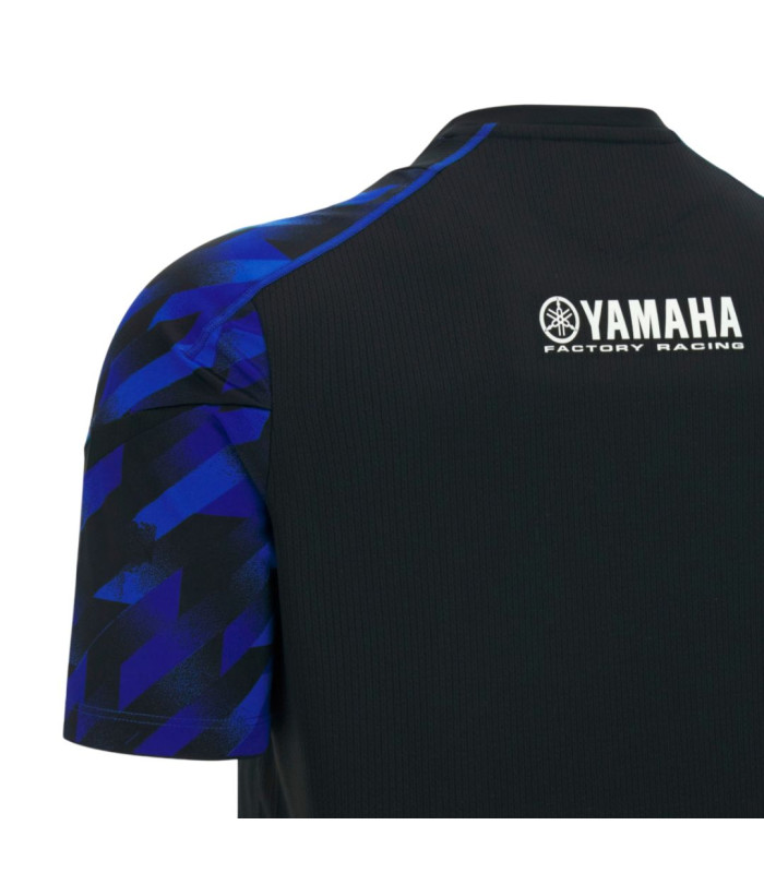 Caractérisée par des graphismes sublimés sur les manches dans des tons bleus et un design frontal dynamique rehaussé de fines rayures verticales, elle présente des inserts latéraux et des panneaux en Micromesh au dos qui favorisent la fraîcheur et une respirabilité continue. Le logo Monster Energy Yamaha Moto GP est appliqué sur le côté gauche de la poitrine. Elle est également sublimée par les couleurs et les sponsors officiels de l'Équipe.