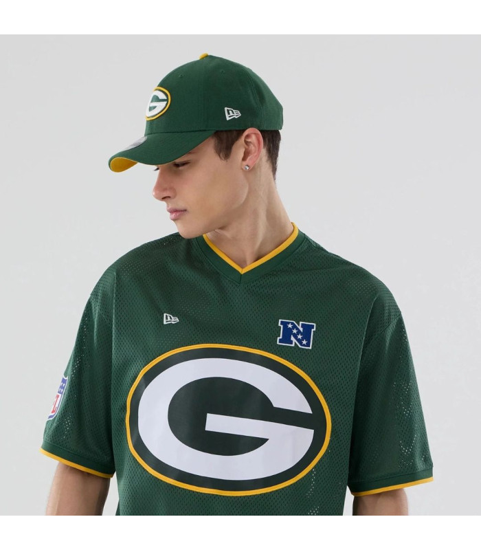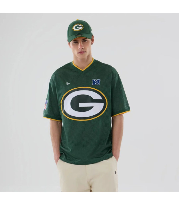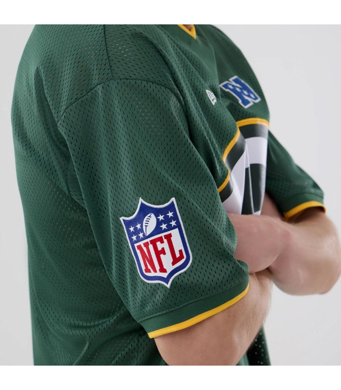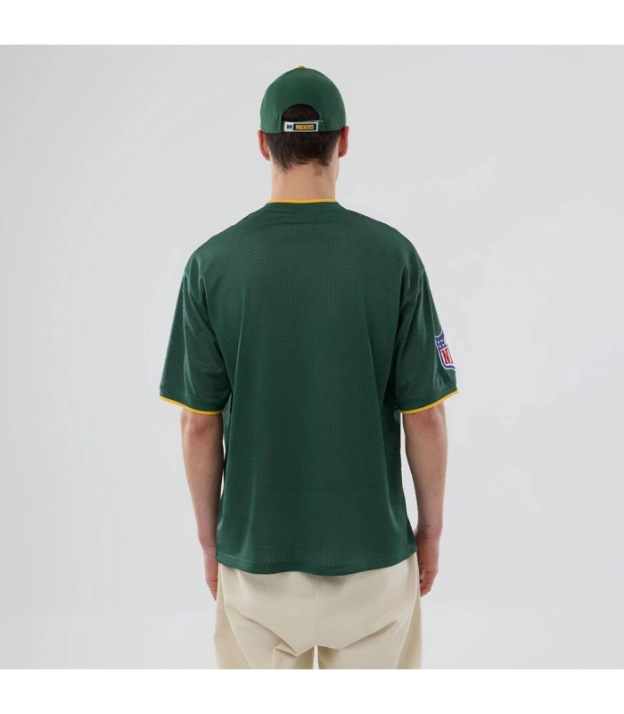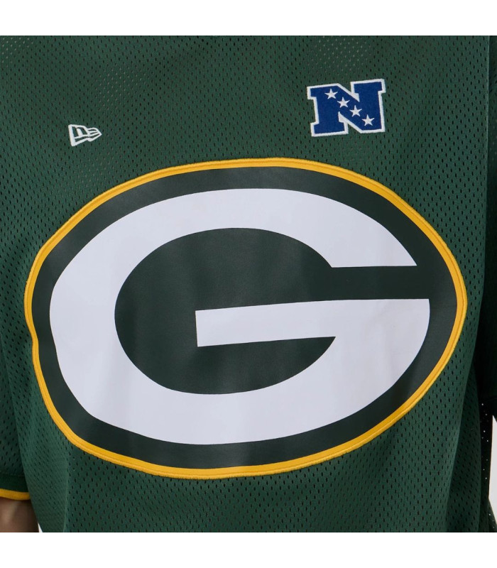T-shirt Oversize en Mesh Green Bay Packers NFL Vert foncé, Logo Green Bay Packers à l’arrière, Logo NFC à gauche sur la poitrine, New Era Flag brodé à gauche, Logo de la NFL sur la manche droite, Coupe oversize, Fabriqué en matière mesh, 100 % POLYESTER