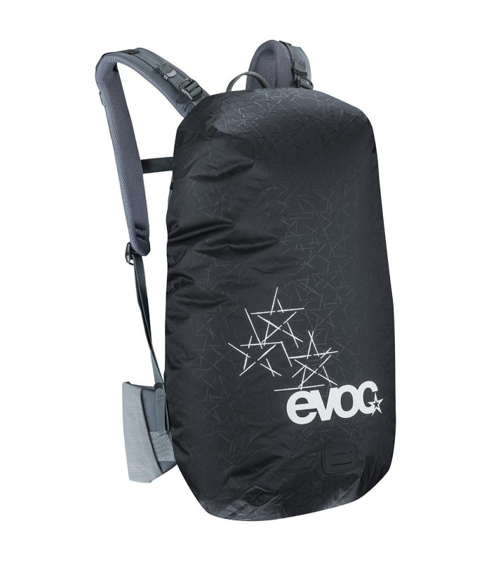Housse de pluie pour le sac à dos EVOC. Disponible en taille M 10 – 25 l, 50 g, 27 x 56 x 16 cm et L 25 - 45 l, 70 g, 35 x 70 x 25 cm