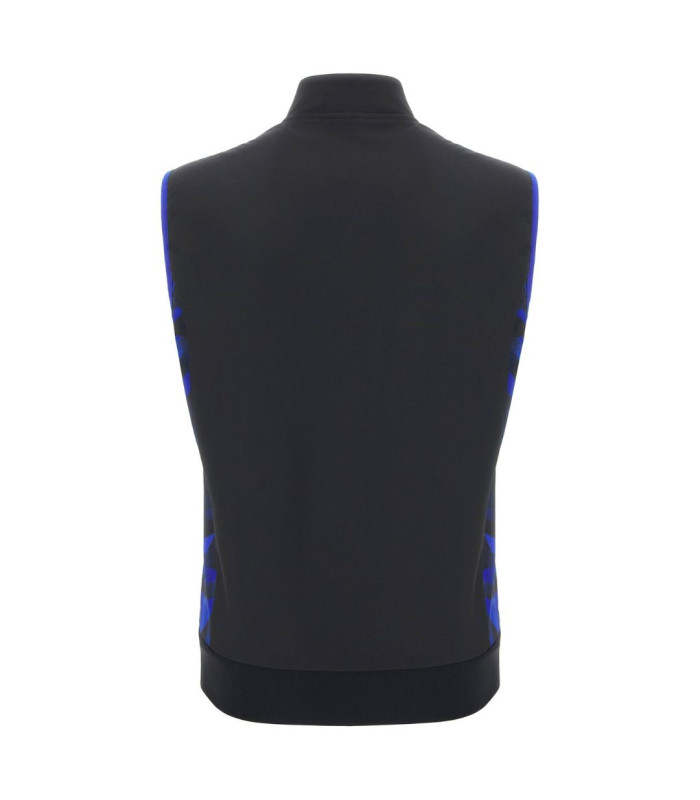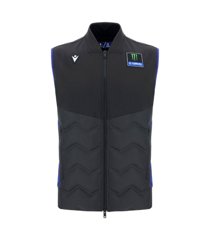 Réalisé en tissu softshell, il offre protection et confort tout en conservant une silhouette épurée et structurée. Il présente une fermeture zippée intégrale moulée sous pression à double curseur et des poches latérales zippées, tandis que le panneau frontal matelassé assure une isolation supplémentaire. Les inserts latéraux contrastés valorisent le design, complété par un bas en rib garantissant un ajustement stable. Le logo Monster Energy Yamaha Moto GP est appliqué sur le côté gauche de la poitrine. Il est également sublimé par les couleurs et les sponsors officiels de l'Équipe.